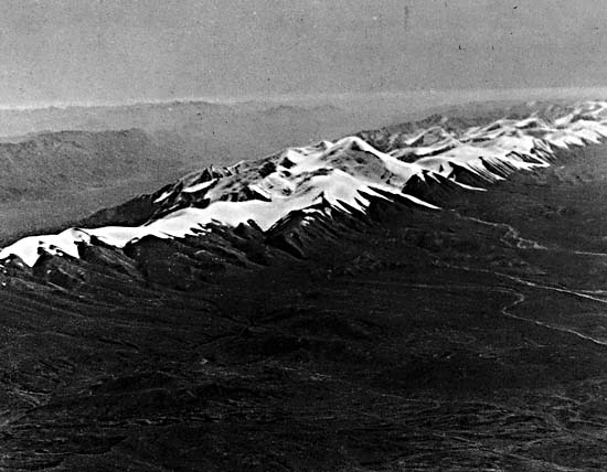 Earthquake solutions and evidence from Landsat imagery to the east and north of the Kuruk Tagh suggest that many of the faults bounding the individual block uplifts are actually reverse faults (Tapponnier and Molnar, 1977). The recent and continuing uplift of these blocks is attested to by the active system of steep alluvial fans that flank most of the uplifts.