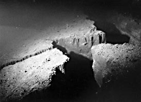 | Figure 12.1. Rift Valley in the East Pacific Rise near 13°N, obtained during a dive of the CYANA submersible (CYANA in 1972); courtesy of R. Hekinian. |