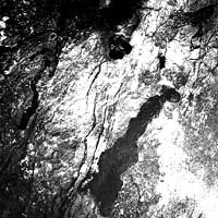 Volcanoes Essimingor and Gelai follow the nephelinite/ phonolite trend. That small conical volcano, Oldoinyo Lengai (2880 m above sea level; Figure V-19.3), and the nearby caldera-topped Kerimasi have expelled ash of carbonatite composition and sodium-rich flow material is well known from Oldoinyo (note bright spot in its interior). This is the only active volcano in this region of the rift, having erupted more than eight times in the last 300 years. These volcanoes are the principal suppliers of the soda that accumulates in the Lake Natron lacustrine deposits. Kitumbeine to the southeast is a smaller version of Mt. Kenya and is the source of phonolite and basalt flows and ash (LeBas, 1977). Text modified from comments by G. Goles, University of Oregon. Landsat 2368-07040 -6, January 25, 1976.